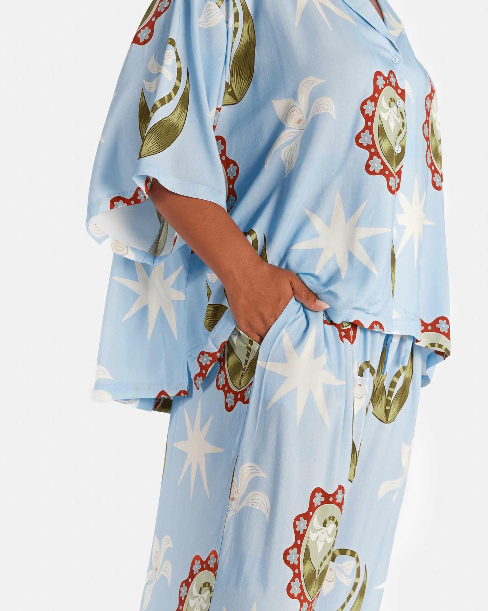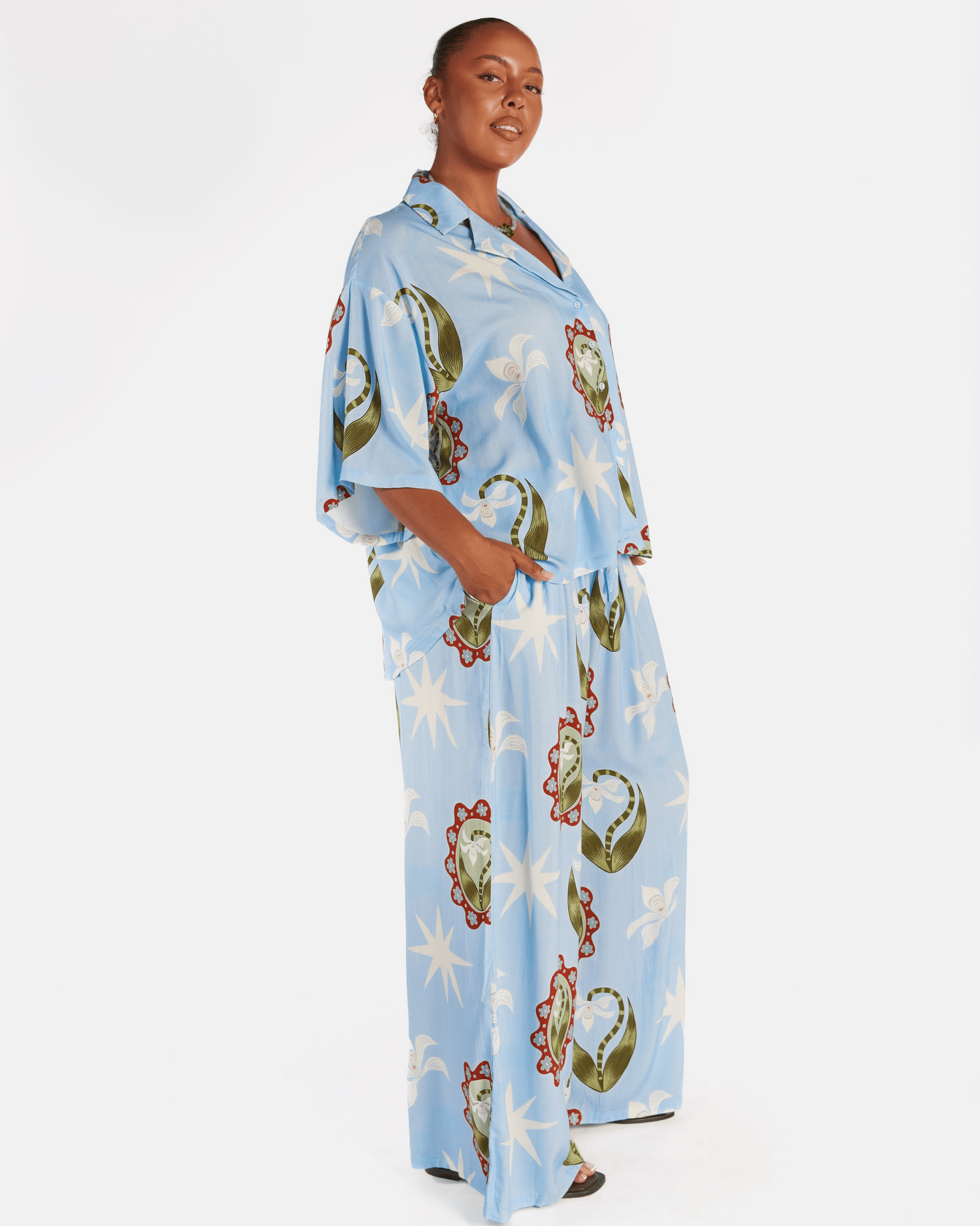 Blending romantic florals with effortless, lived-in silhouettes, La Fleur is designed to feel like it already belongs in your wardrobe. It’s soft but confident, nostalgic yet grounded. We’ve brought together easy maxi dresses, relaxed separates and versatile layering pieces in oversized blooms and wearable tones that move seamlessly from summer warmth into autumn air.