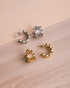 Transform your look with our Berlin Hoop Earrings. Made from 18ct Gold Plated Stainless Steel, these hoops blend timeless sophistication with a touch of playfulness.