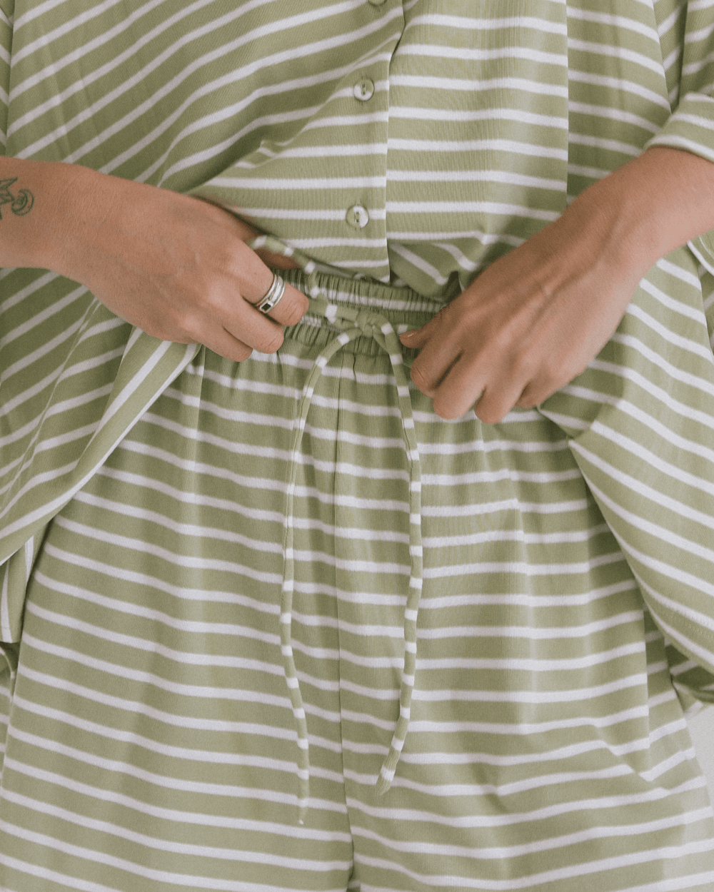 Meet your new throw on, live in, never want to take off shorts. The Essentials Shorts in Green Stripe are made from our ultra soft 92% Tencel and 8% Spandex blend, giving you that cool, breathable, stretchy comfort that feels good from morning to night. If you love the matching Lacey Shirt or the Essentials Pants, these are the cute little sister you absolutely need.