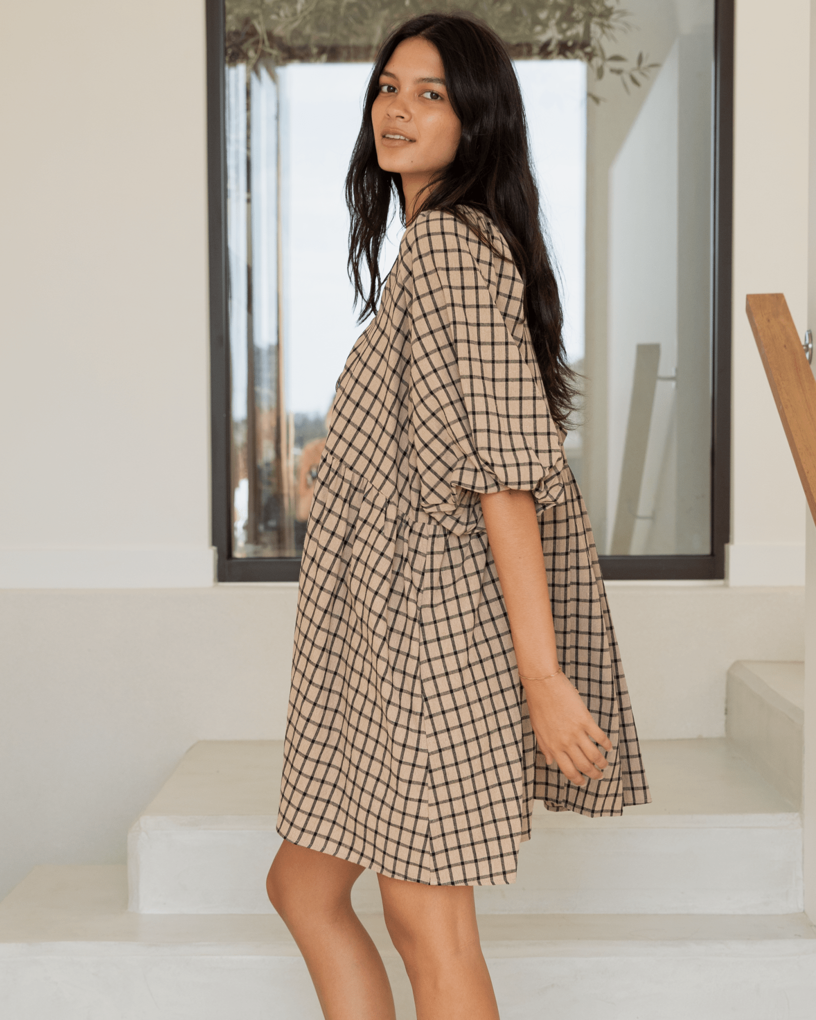 Frankie Mini Dress | Neutral Gingham