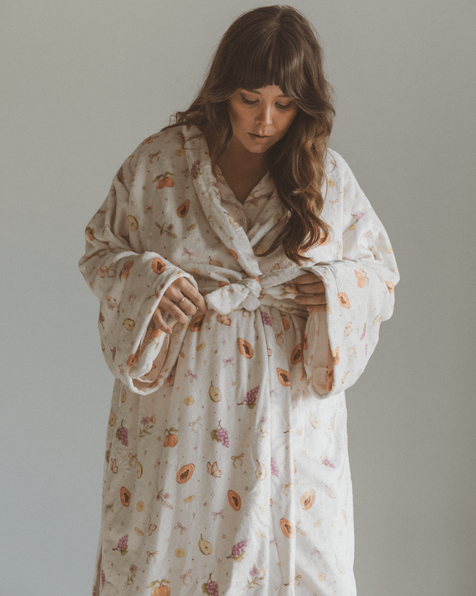 Thoughtfully oversized for that cloud-like feel, it includes a matching waist tie for an adjustable fit and extra coziness. Whether it's for slow mornings, quiet moments, or cuddles on the couch, this robe is a wearable hug made just for her.