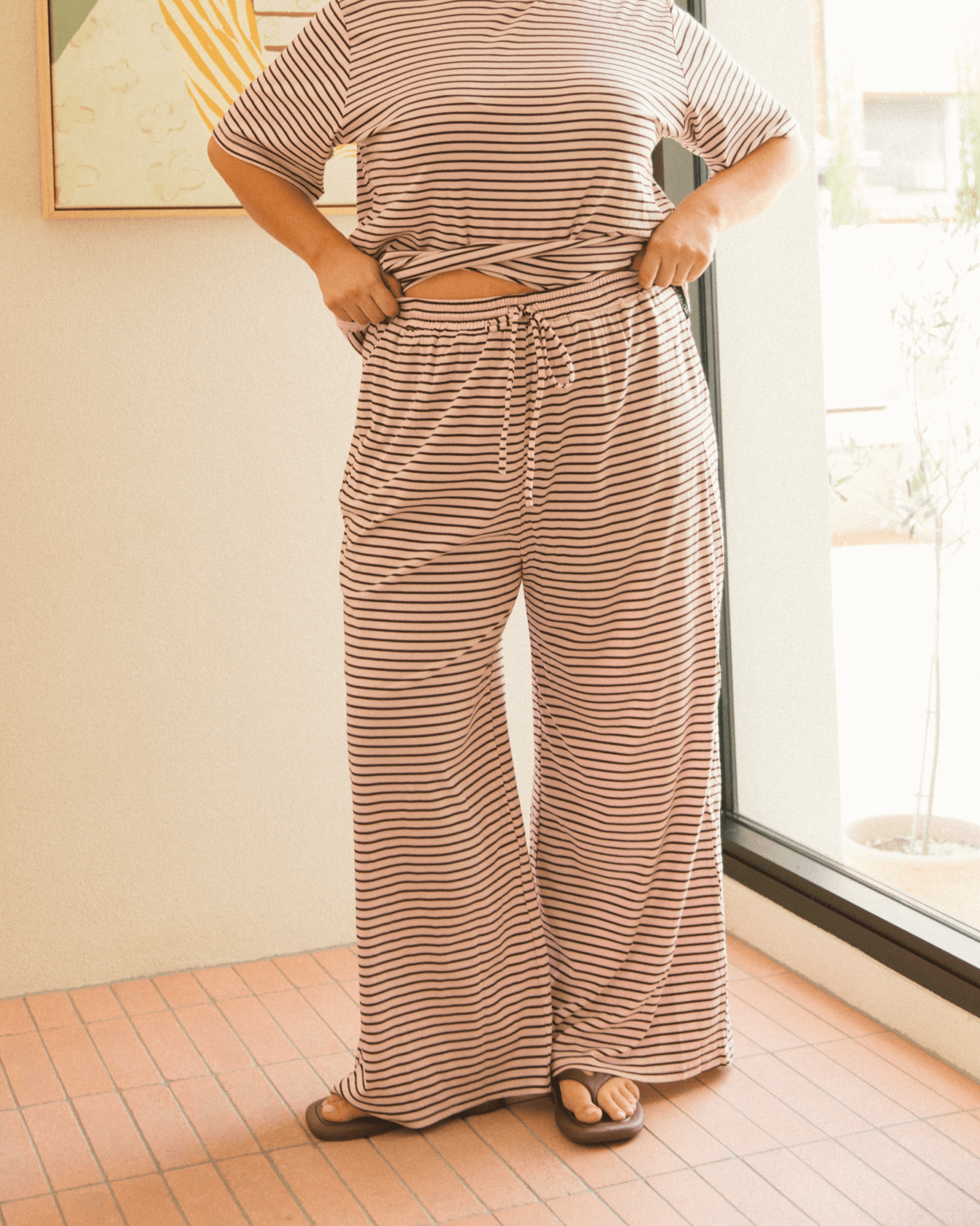 Buttery, light, breathable, and basically feel like wearing a cloud. The high elastic waistband keeps things comfy without squeezing, while the wide-leg fit gives total flowy freedom — perfect for chasing kids, chilling on the couch, or doing the “just one quick thing” kind of errands.