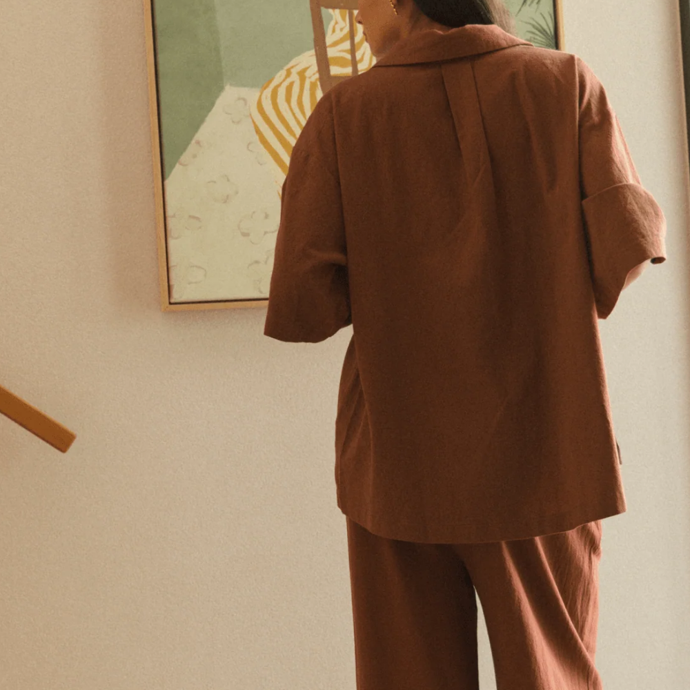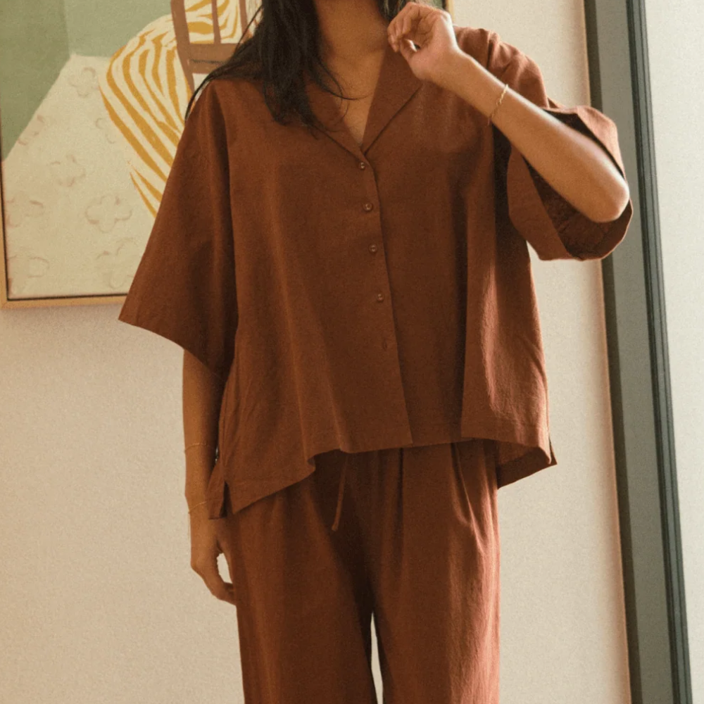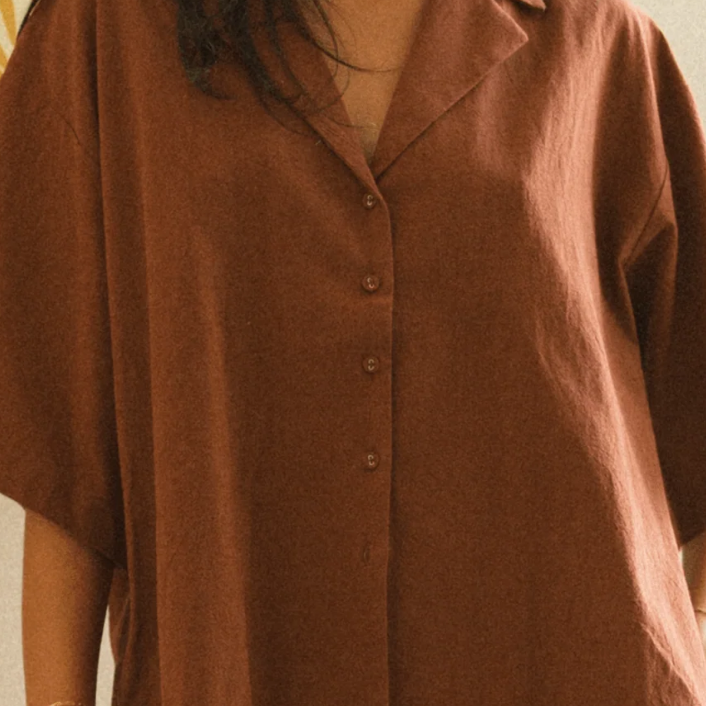 This is the kind of shirt you’ll live in — the Lounge Shirt in Rust Brown is made for easy days, slow mornings, and anything in between. Designed with a breezy, oversized silhouette and made from 100% breathable cotton, it’s a relaxed essential you can wear from bed to beach and back again.