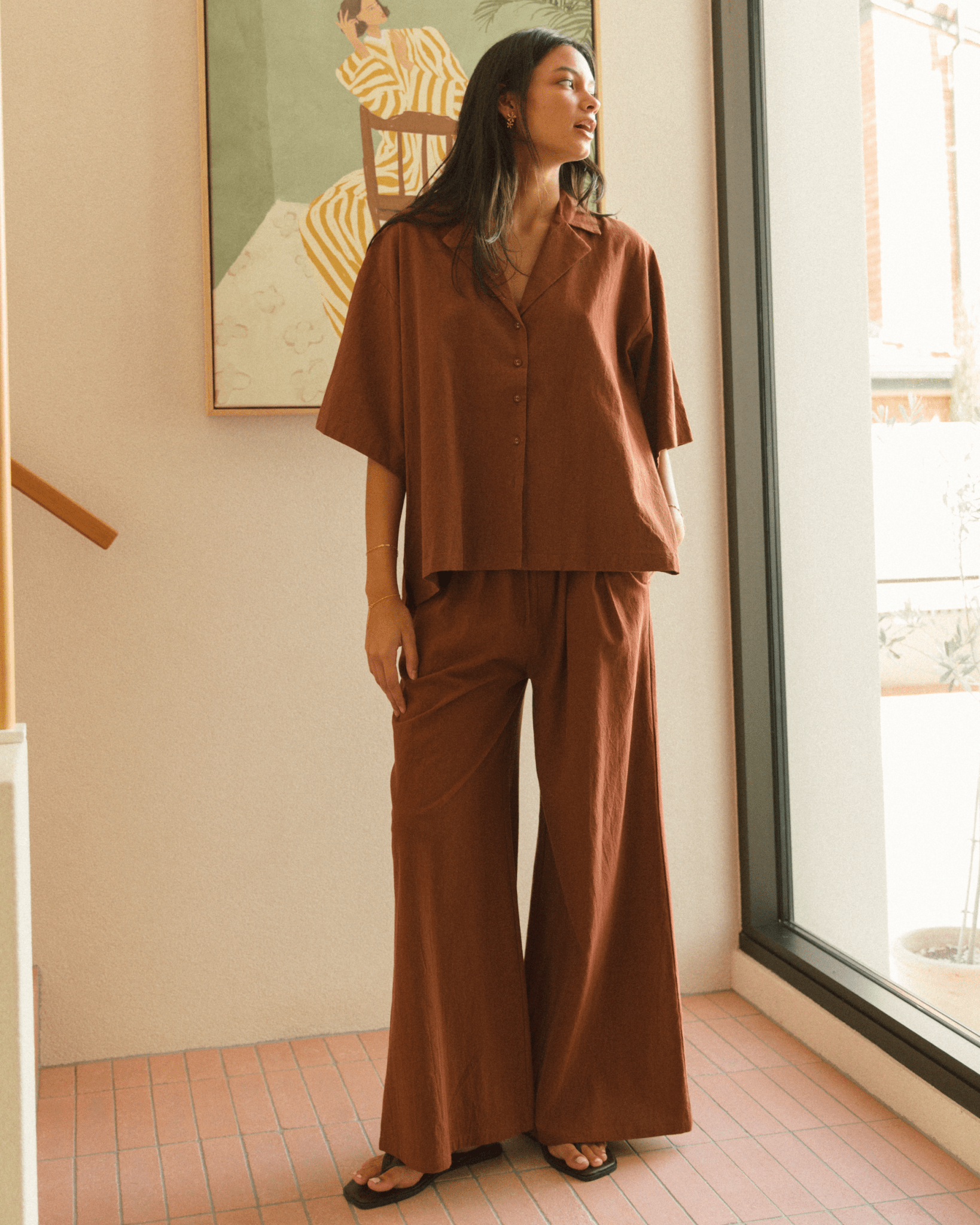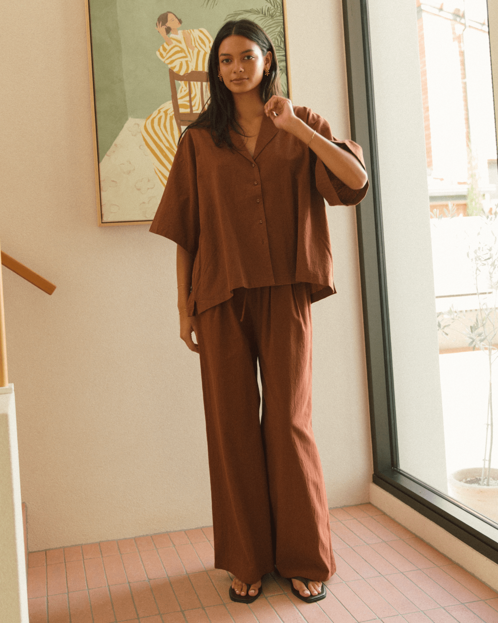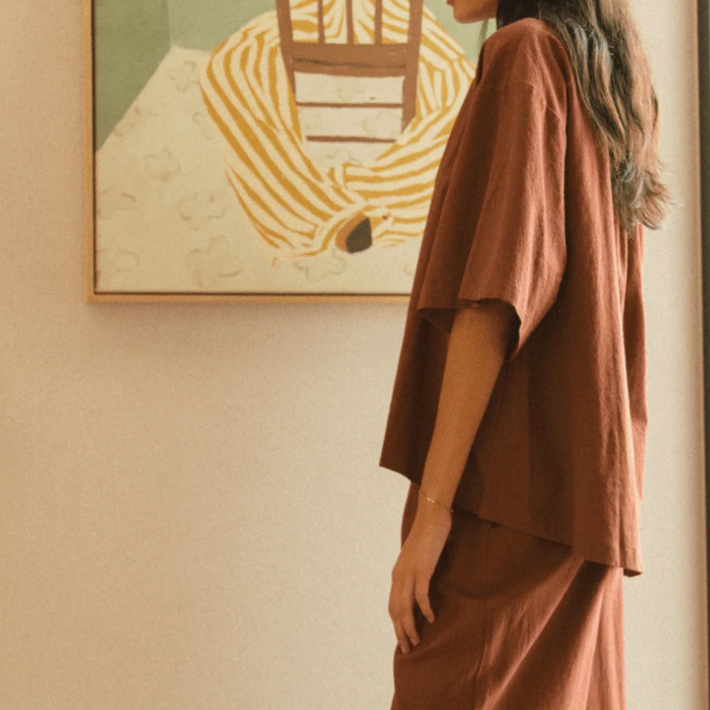 This is the kind of shirt you’ll live in — the Lounge Shirt in Rust Brown is made for easy days, slow mornings, and anything in between. Designed with a breezy, oversized silhouette and made from 100% breathable cotton, it’s a relaxed essential you can wear from bed to beach and back again.