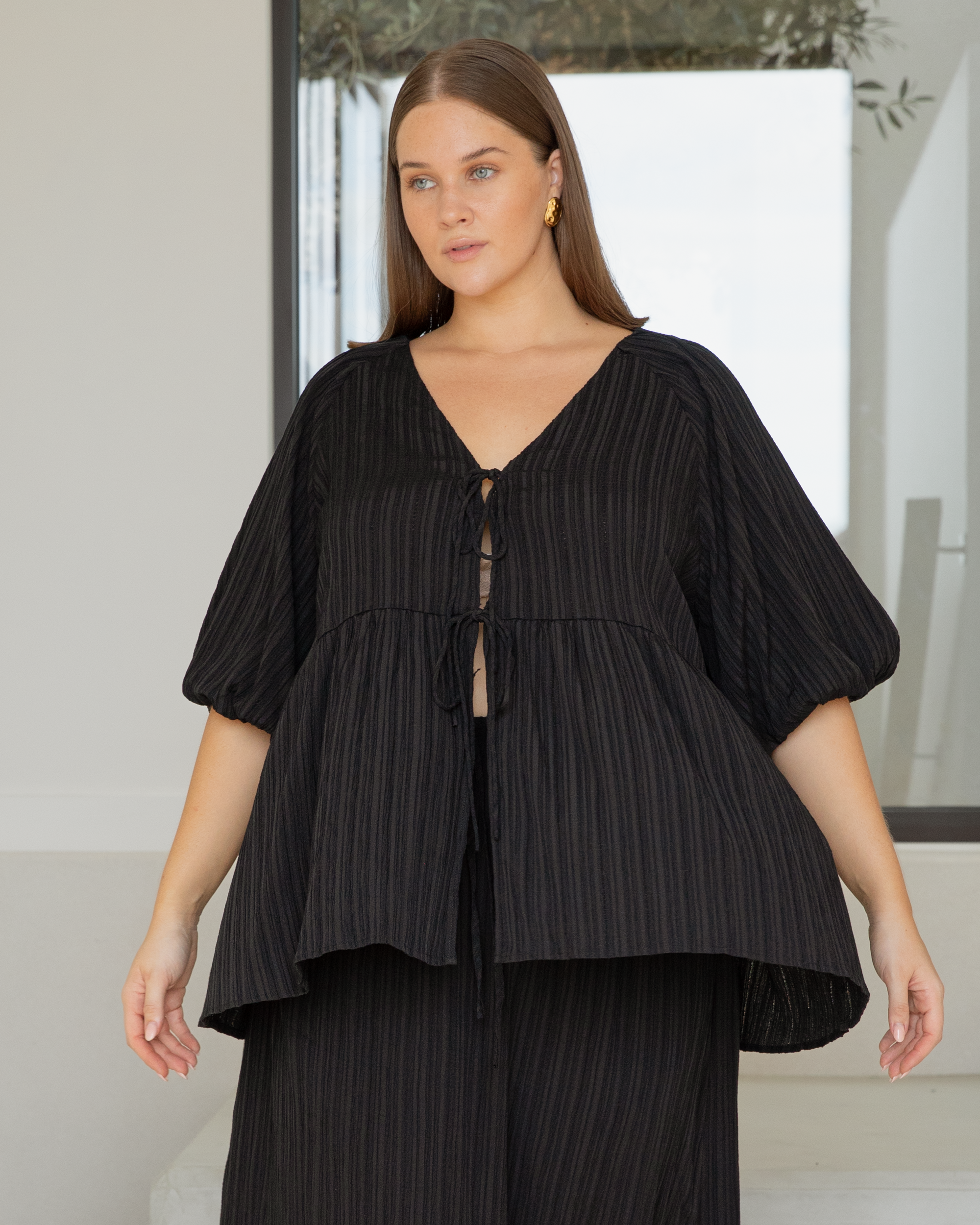 When choosing your size, focus on the overall length and sleeve fit rather than worrying about a snug fit across the torso — this top is intentionally loose! If you prefer a more structured look, you may consider sizing down, but if you’re all about that oversized vibe, stick to your regular size for maximum drape and flow.