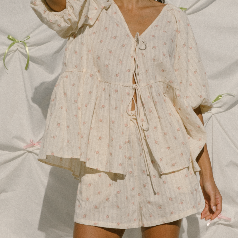 Crafted from 100% cotton and sprinkled in the sweetest Garden Breeze print, the Frankie Top is your new everyday go-to with main character charm. Featuring a cross-over bust, floaty puff sleeves, and a cute front-tie moment, she’s breezy, easy, and ready for whatever your day throws at you.