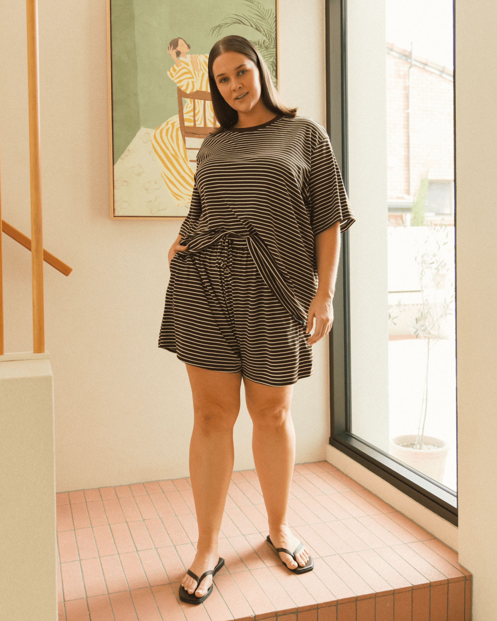 Essentials Shorts | Brown & White Stripe