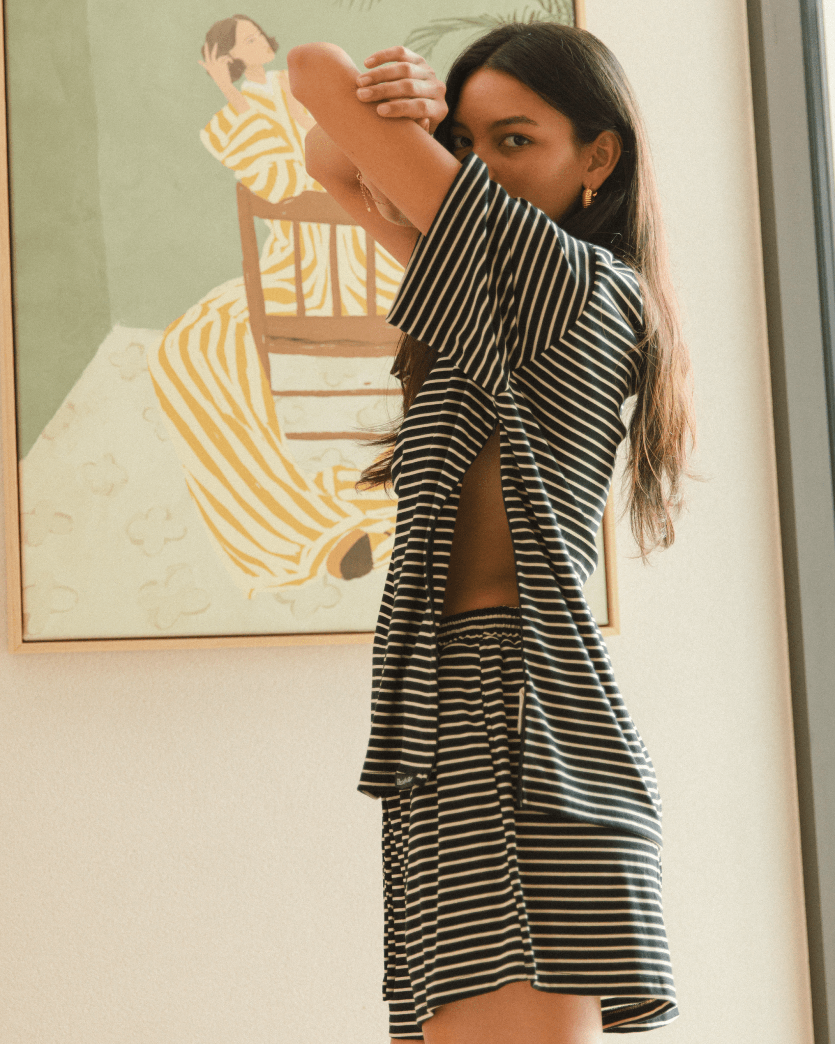 Made for comfort without compromise, these pieces are woven with softness and ease in mind. Think fabrics that breathe, silhouettes that give you space to be, and shapes that shift with your body rather than against it.