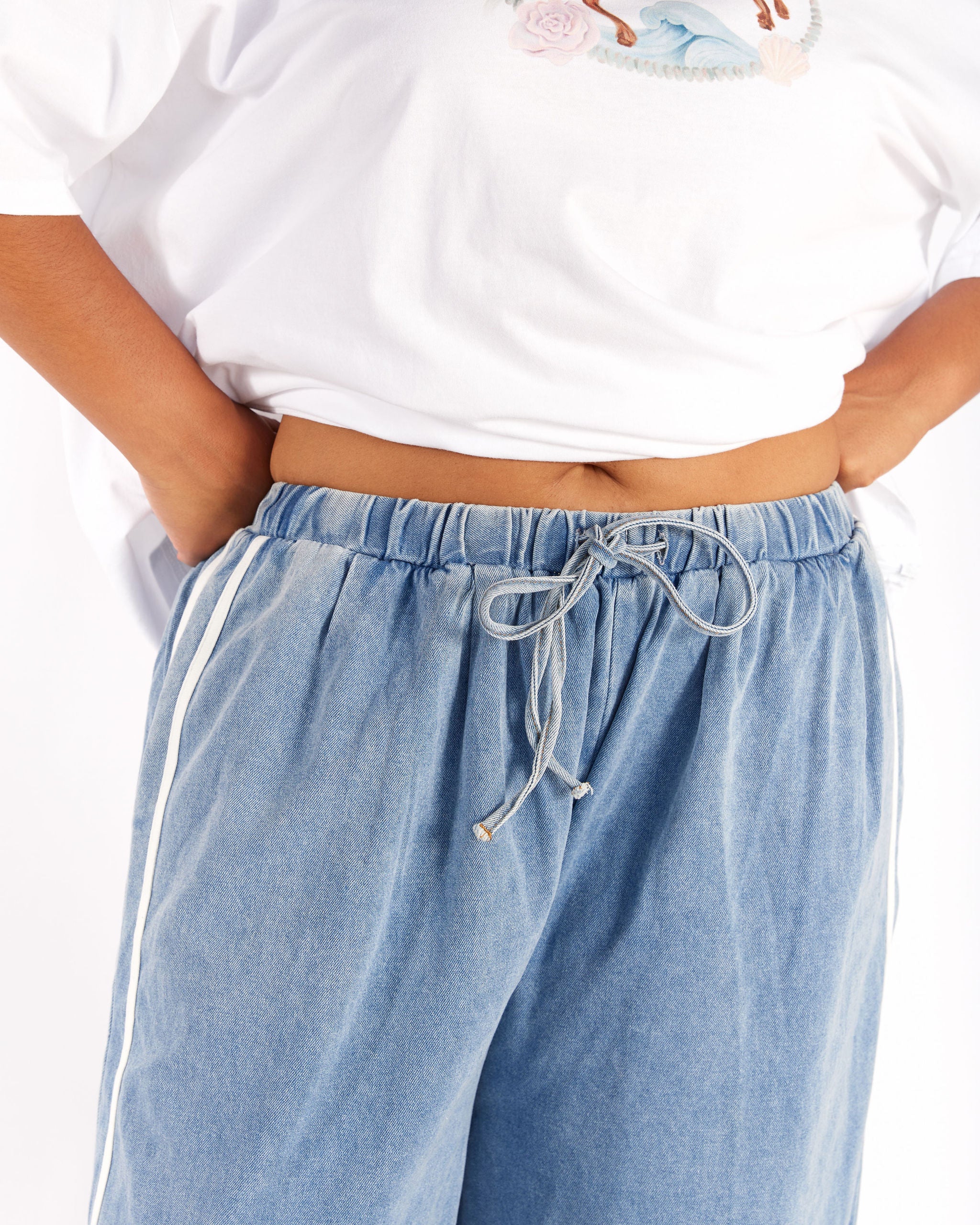 Posey Pants | Denim/White