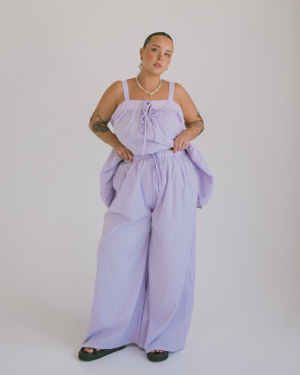 Comfort, but make it cute. Our Posey Pants are basically your new uniform for everything from couch hangs to cocktails. With their oversized, flowy fit and breezy fabric, these pants are ready to take you from bed to beach to “oh, this old thing?” brunch plans without breaking a sweat.