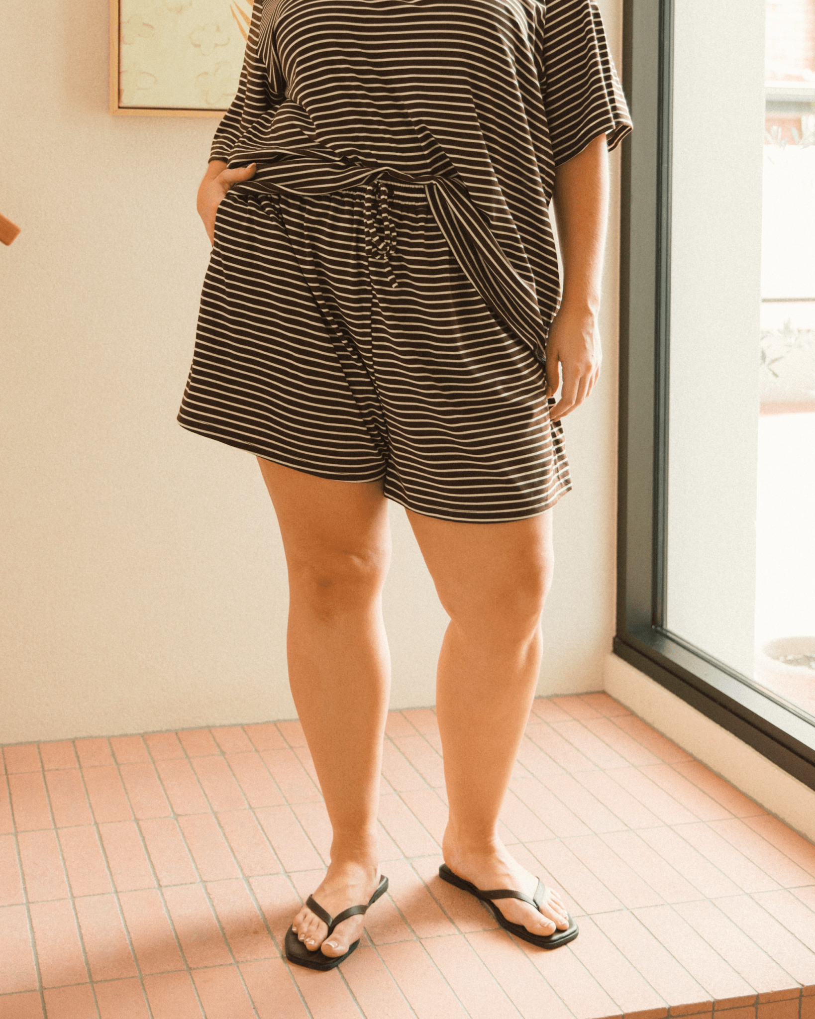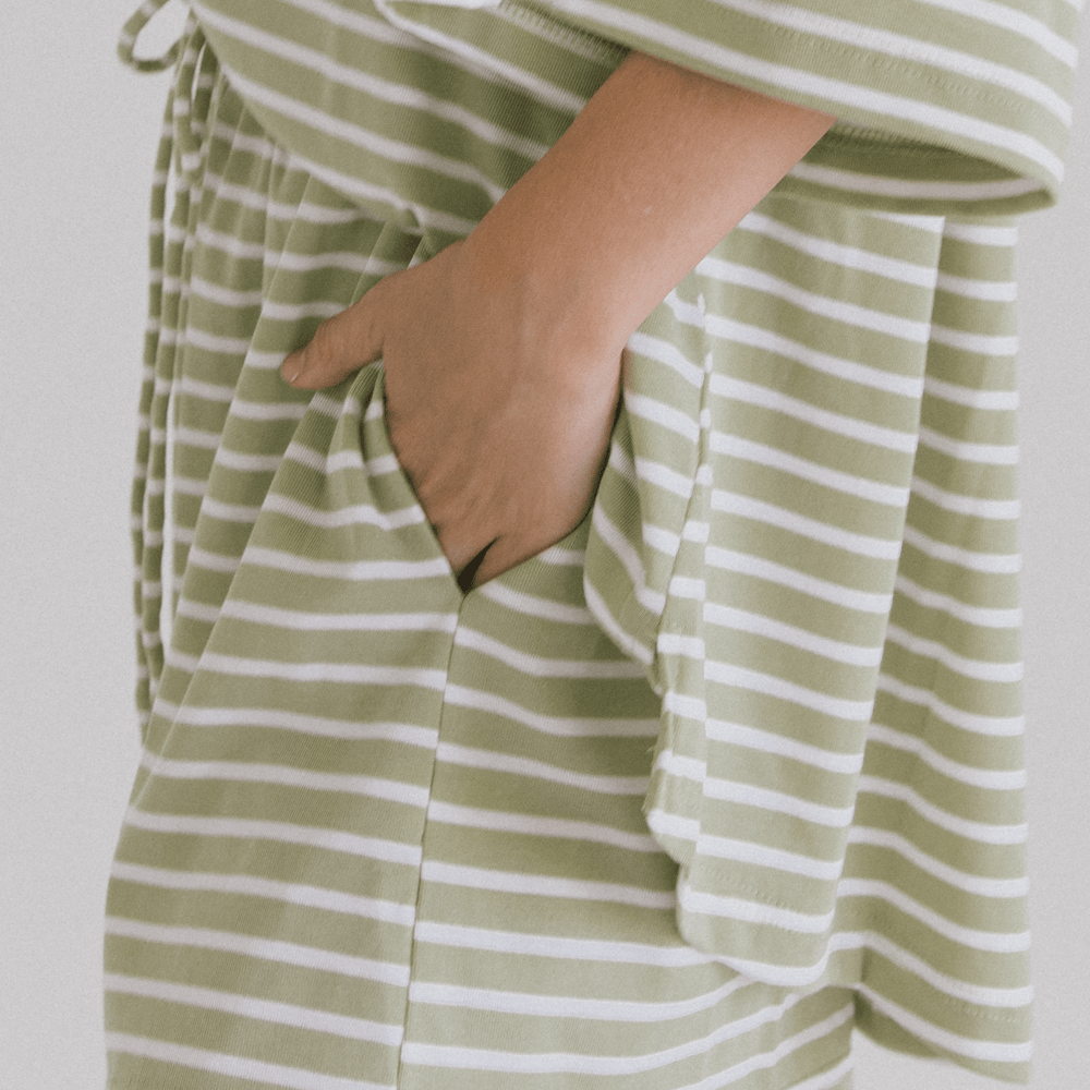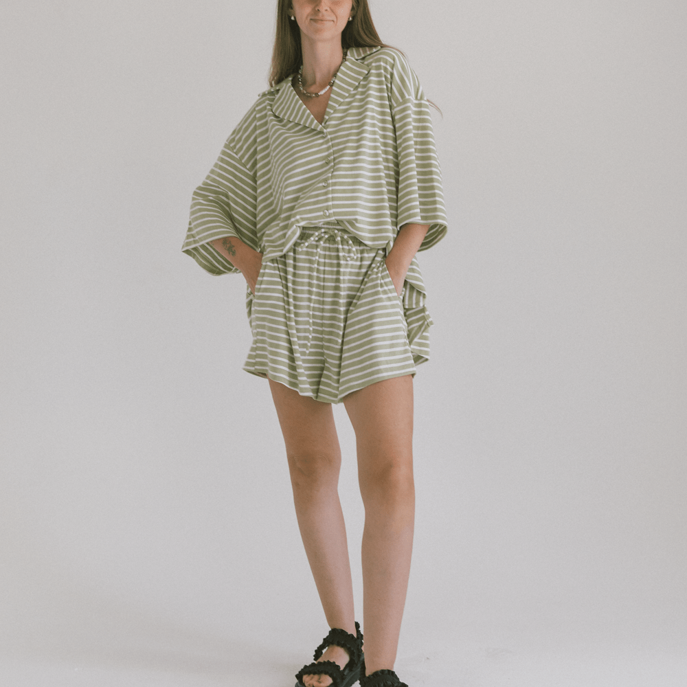 Meet your new throw on, live in, never want to take off shorts. The Essentials Shorts in Green Stripe are made from our ultra soft 92% Tencel and 8% Spandex blend, giving you that cool, breathable, stretchy comfort that feels good from morning to night. If you love the matching Lacey Shirt or the Essentials Pants, these are the cute little sister you absolutely need.