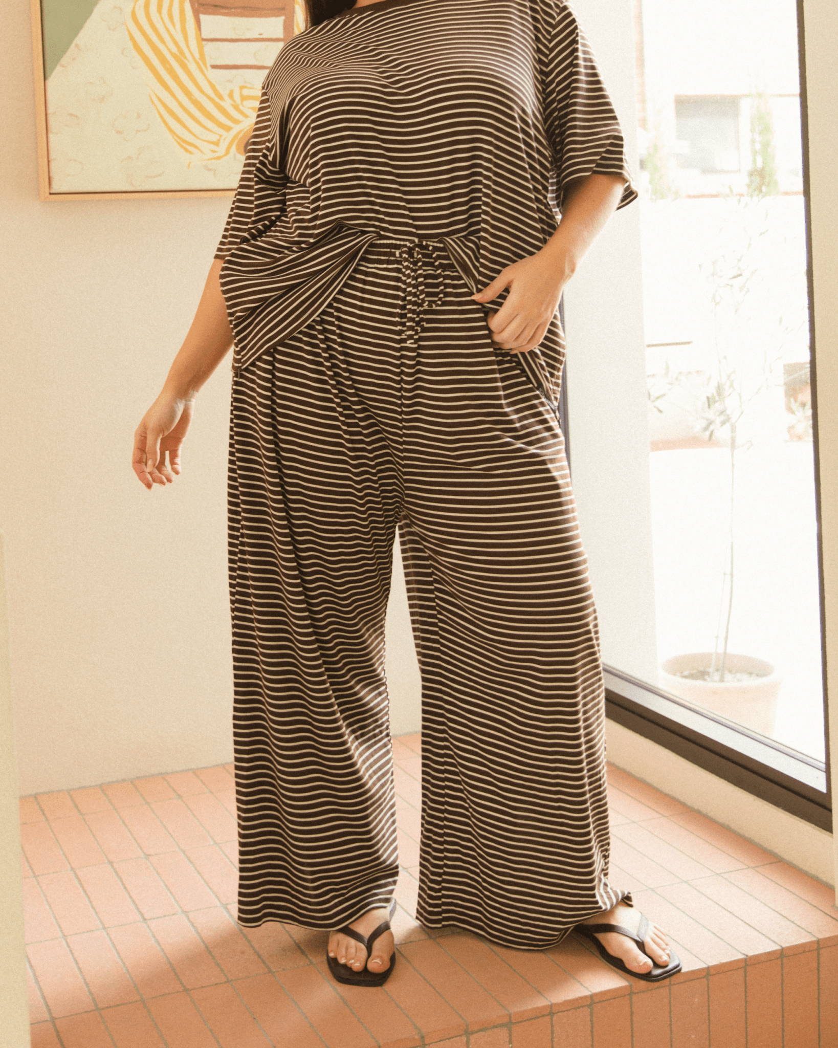 The soft green stripe gives them an easy going, coastal feel that works for lounging at home, running errands or styling up with the matching shirt for a full set moment that looks cute with zero effort.