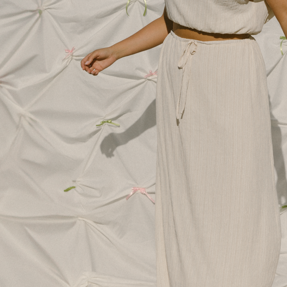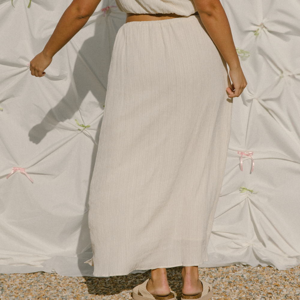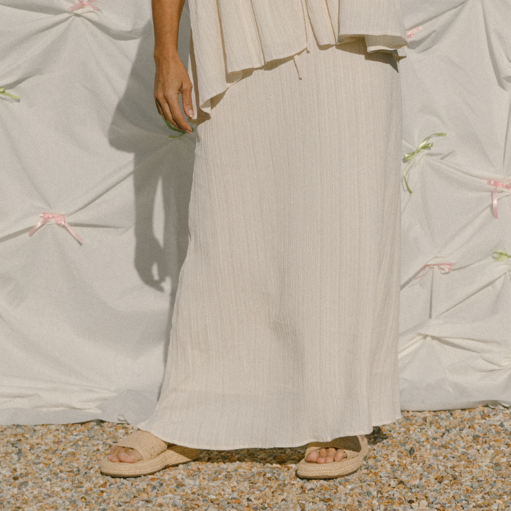 Your Lacey Maxi Skirt in Cream Crepe is breezy, comfy, and made to move with you — from coffee runs to catch-ups. Here’s how to keep her soft and dreamy: