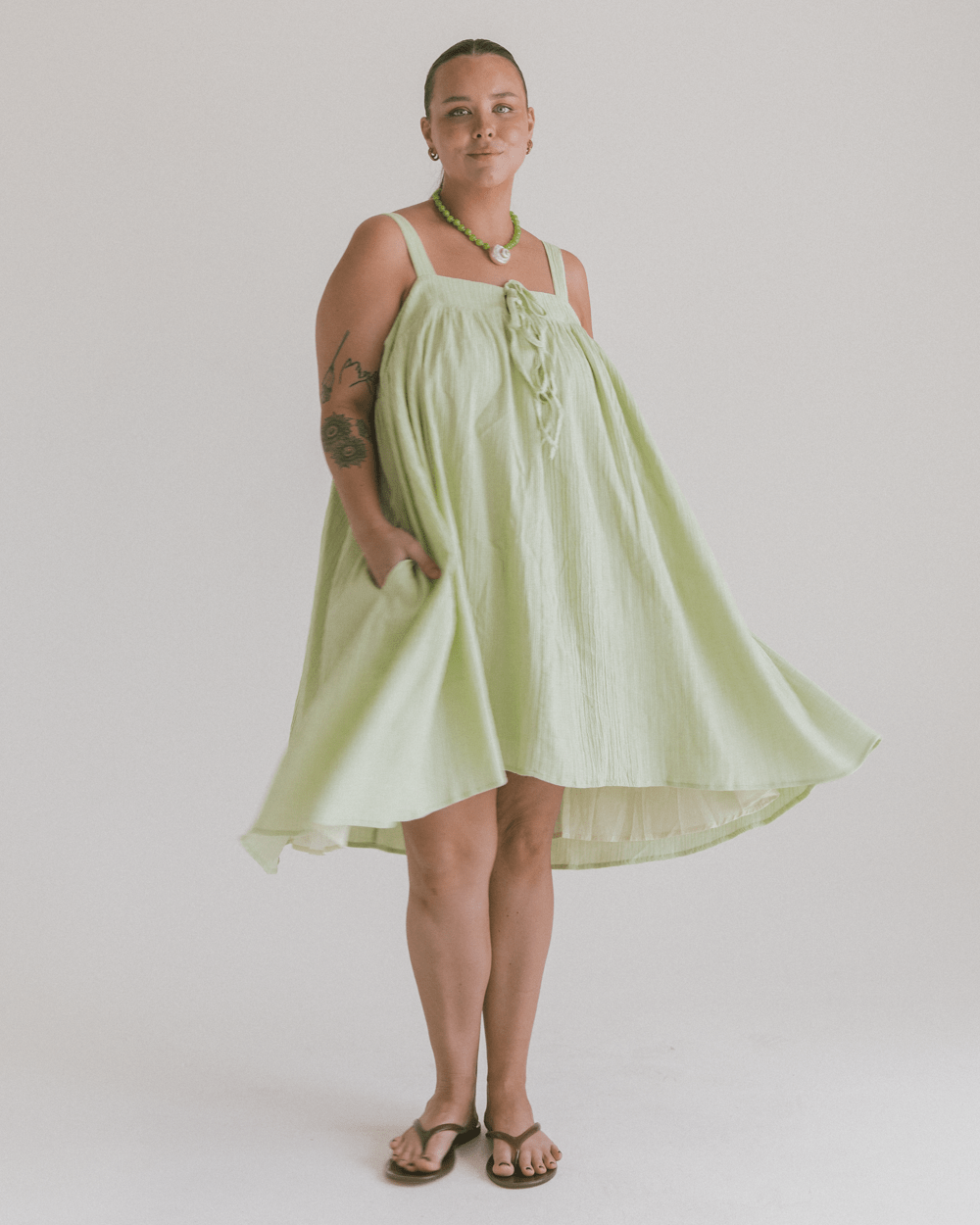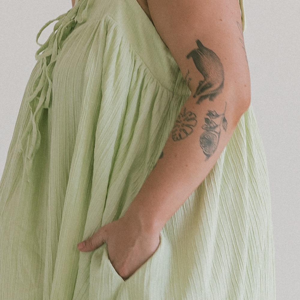 Crafted from 97% cotton & 3% spandex and fully lined for confidence and comfort, Zimi is as easy to wear as she looks. Adjustable straps mean you can tweak the fit to suit you and the side seam pockets scream “fashion-meets-function”. The relaxed silhouette keeps things breezy, whether you’re moving through busy days or simply soaking up the sunshine.