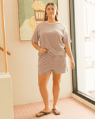 These aren’t just any lounge shorts. Ridiculously soft & stretches in all the right places and stays breathable when life gets a little sweaty. The high-rise elastic waist is there to love you through every snack break, toddler wrangle and “I forgot we had swimming today” moment.