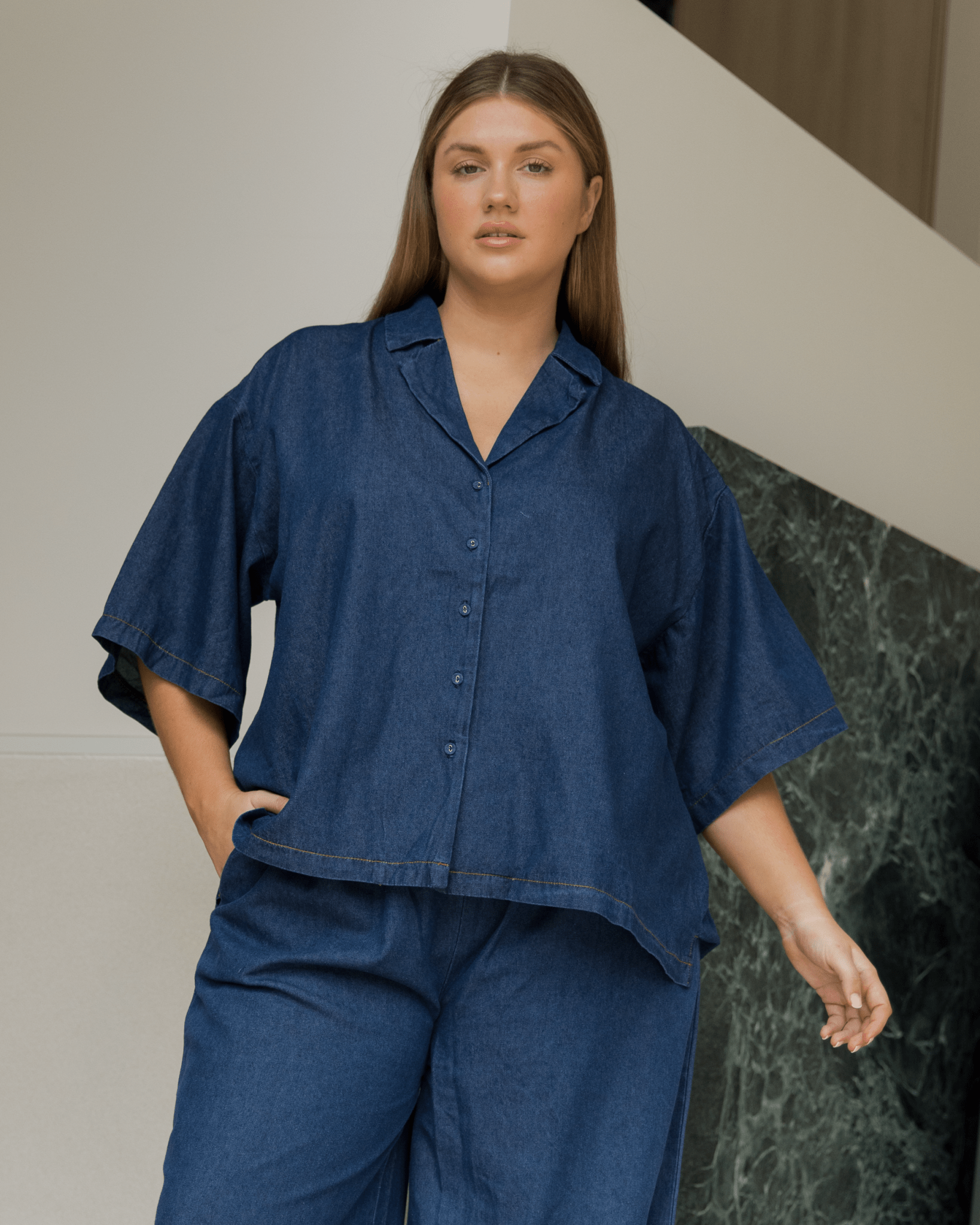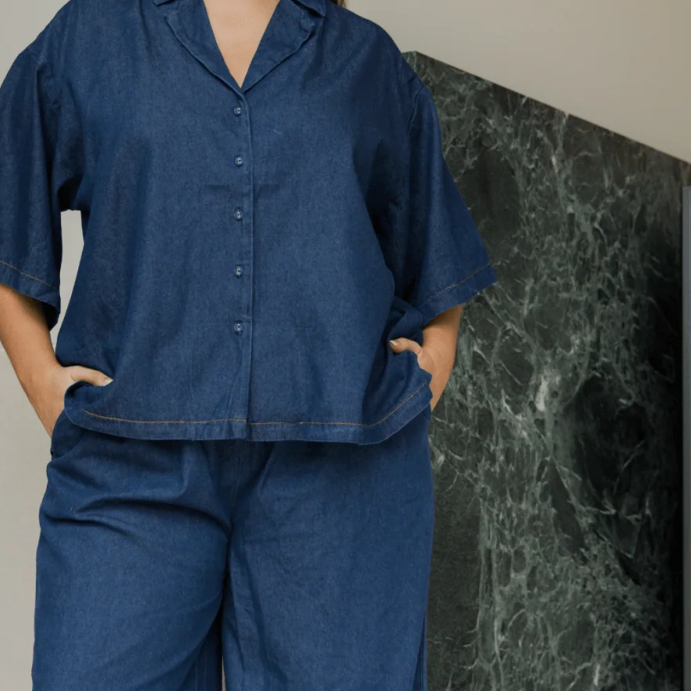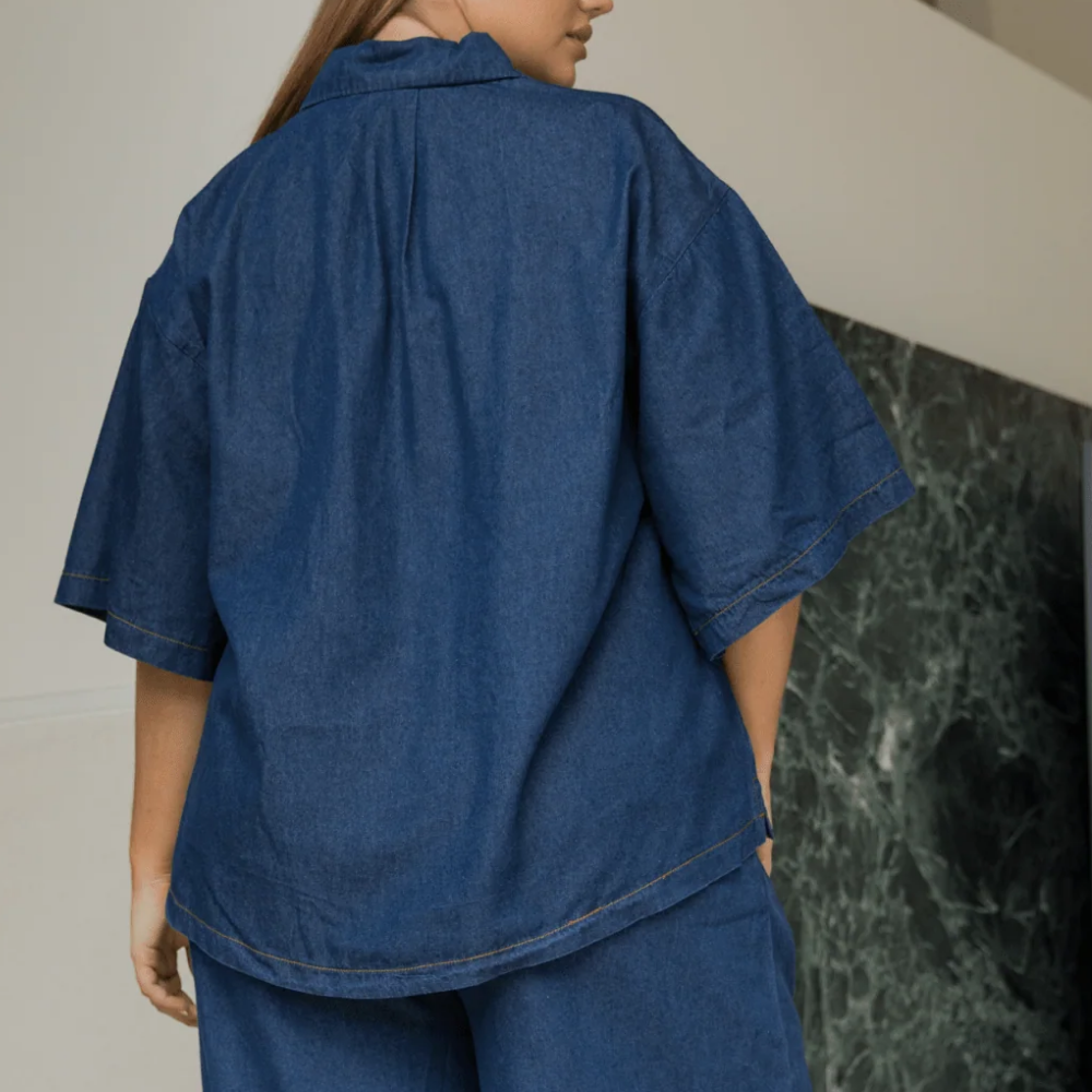 Say hello to your new go-to layer — our Dark Denim Lounge Shirt is all about relaxed, throw-on-and-go vibes. Designed with a flowy oversized fit, it’s made to move with you from slow mornings at home to sunny days out and about.