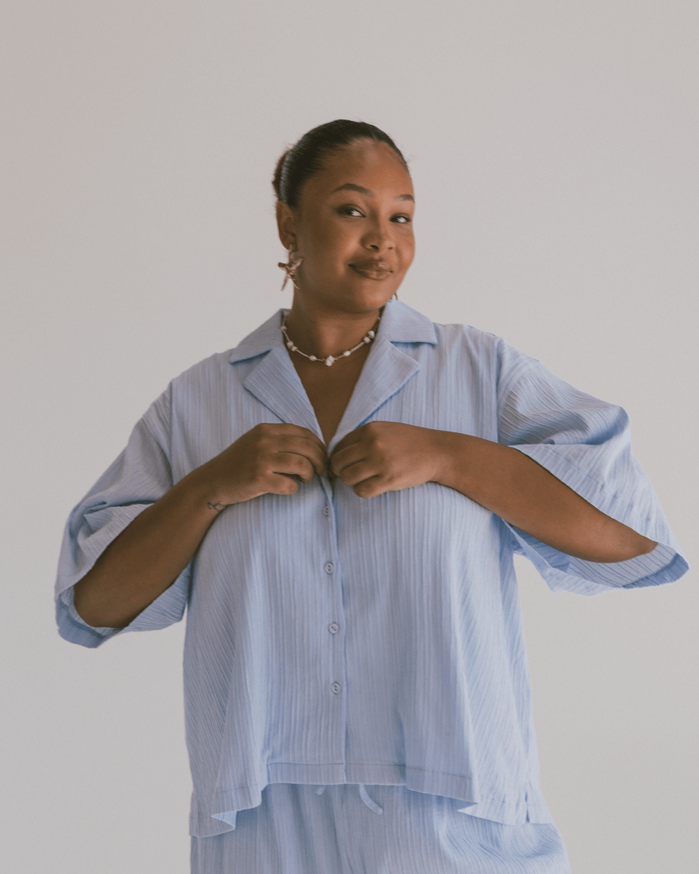 Meet your new forever favourite: the Lacey Shirt. You know the girl in high school that was cool without trying to be? This is her. Oversized, drapey in all the right places, and easy to throw on – it’s giving main character with minimal effort.